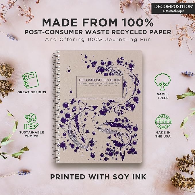 Decomposition Humpback Whales College Ruled Spiral Notebook - 9.75 x 7.5 Journal with 160 Lined Pages - 100% Recycled Paper - Cute Notebooks for School Supplies, Home & Office - Made in USA