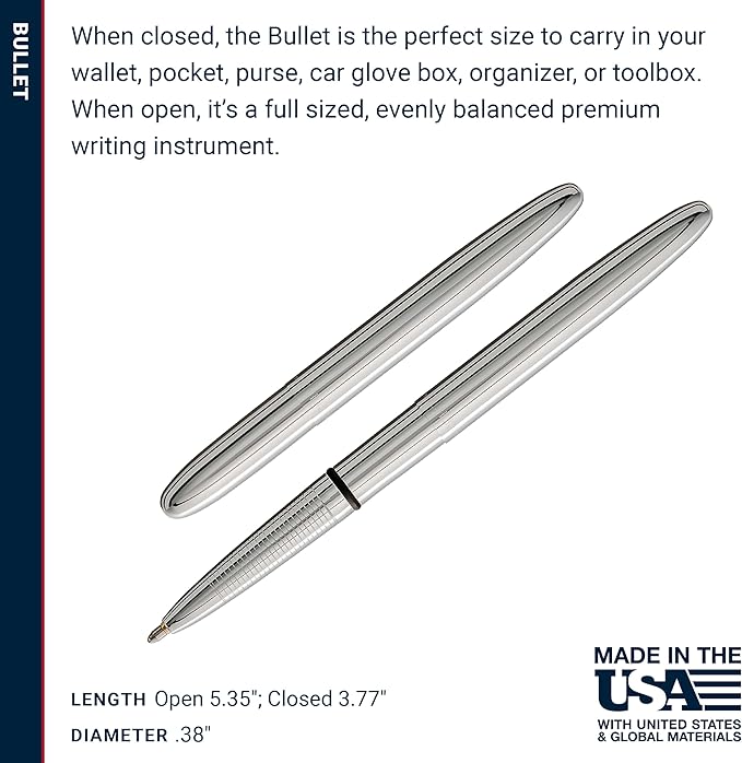 - A Pen Designed to Last: The Chrome Bullet Pen is a timeless, classic ballpoint pen and compact enough to carry in your wallet, pocket, purse, car glove box, organizer, or toolbox