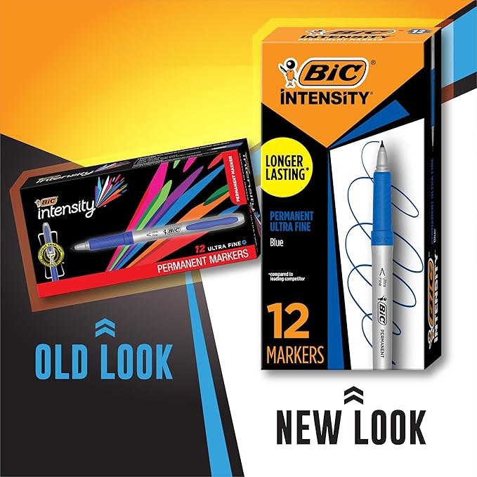 BIC Intensity Blue Permanent Markers, Ultra Fine Point, 12-Count Pack of Blue Markers With Non-Slip Grip for Comfort and Control