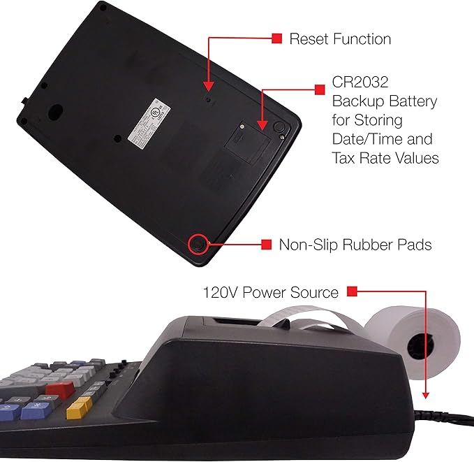 - ADDITIONAL FUNCTIONS: Includes memory plus, memory minus, and recall and clear memory keys. Include floating or fixed decimal, add mode, +/- key, item counter,