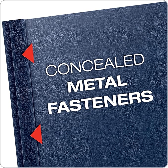 - Concealed metal fasteners hold up to 100 sheets—just 3-hole punch and present