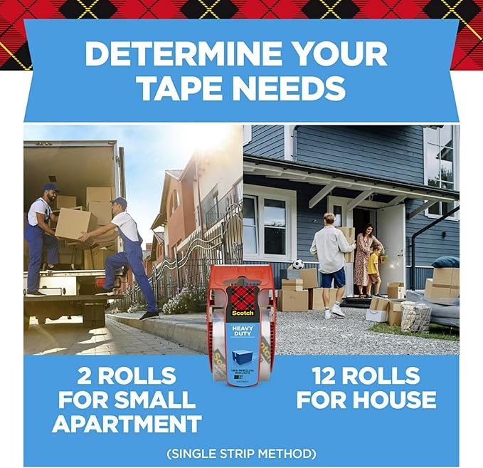 Scotch Heavy Duty Shipping Packing Tape, Clear, Packing Tape for Moving Boxes and Packaging Supplies, 1.88 in. x 22.2 yd., 6 Roll Dispensers, Moving Supplies