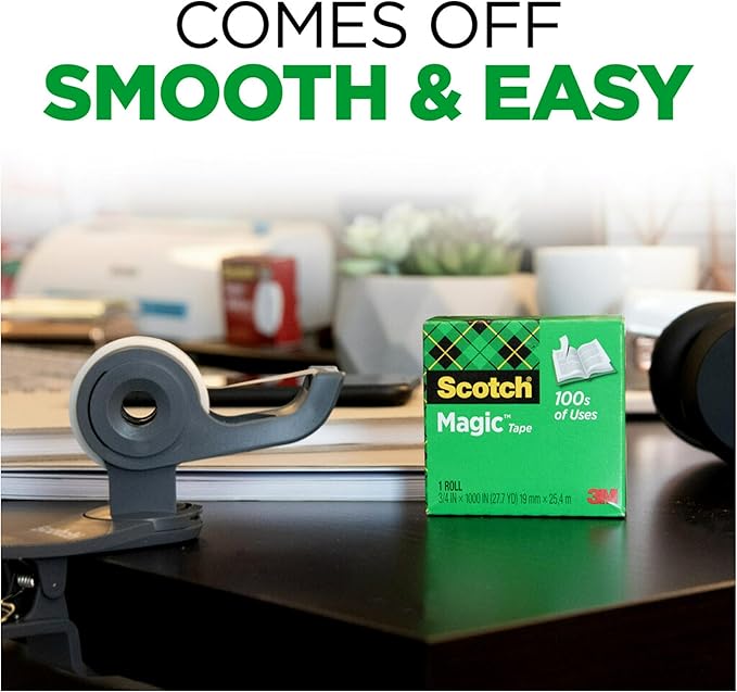 - INVISIBLE TAPE: 12 rolls of Scotch Magic Tape mends rips and tears securely, permanently and invisibly