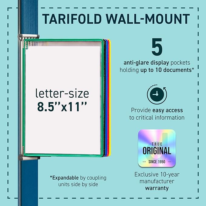 - 10-SHEET CAPACITY: Holds letter-size documents in 5 double-sided and color-coded display pockets, providing 10 views for efficient information sharing and optimal space usage. Perfect for organizing and presenting your materials with ease.