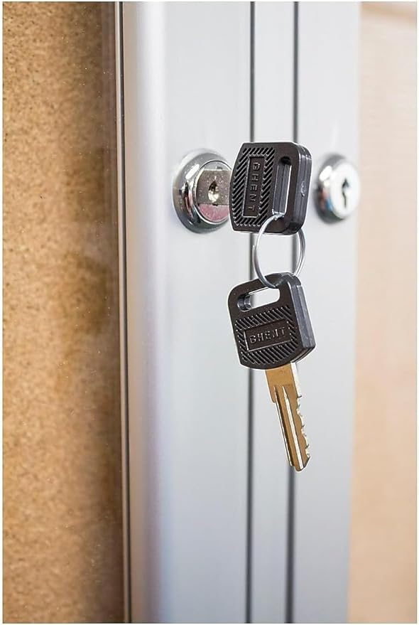 Ghent 36" x 48" 2-Door indoor Enclosed Bulletin Board, Shatter Resistant, with Lock, Satin Aluminum Frame - Natural Cork (PA234K) Made in the USA