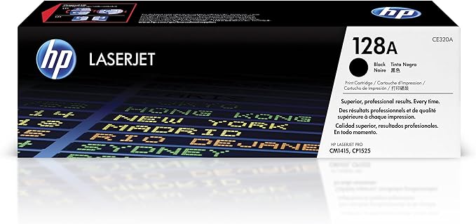 - What's in the box: 1 new Original HP 128A Black Toner Cartridge (CE320A)