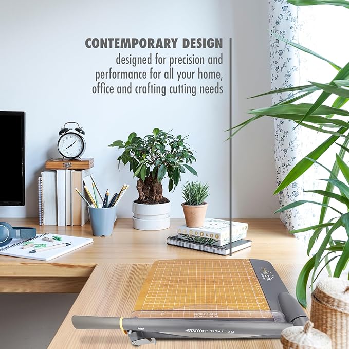 - Paper Guillotine: Featuring titanium-bonded cutting technology and the contemporary design that Westcott is known for, this heavy-duty paper cutter is designed to deliver unparalleled performance