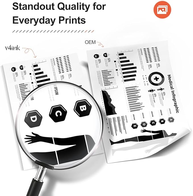 - Strict Production Line: With the utilization of quality components and sub-assemblies, all v4ink products are engineered to produce superb results. Under professionally inspected, tested, and cleaned, v4ink products meet ISO/IEC19752 specifications.