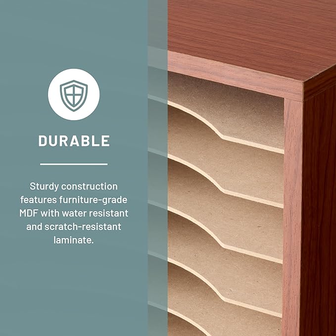 - ADJUSTABLE PAPER TRAY: This desktop sorter has removable hardboard shelves to let you expand compartment size if needed