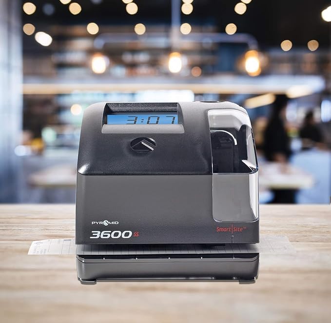 Pyramid Time Systems - 3600SS Dual Function Employee Time Clock and Document Stamp with SmartSite LED Alignment and Tri-View Window - Includes 25 Time Cards, Ribbon, 2 Security Keys