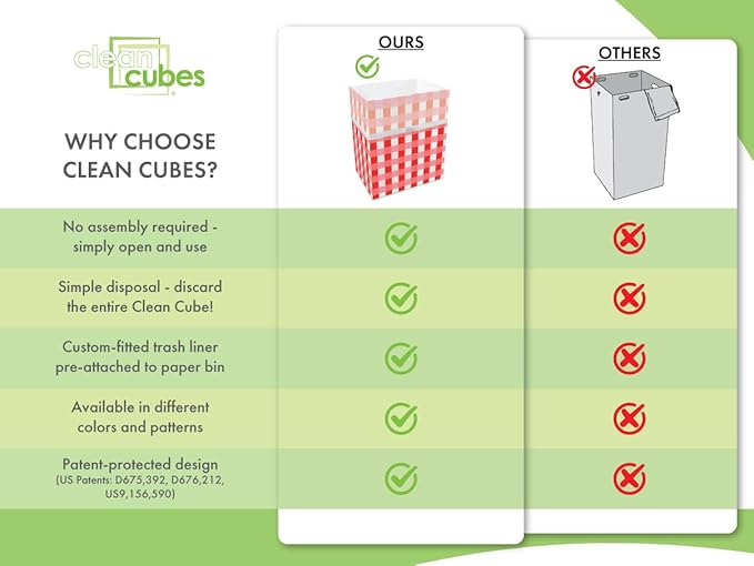 - ✅【EFFORTLESS CLEANUP & DISPOSAL】Simply unfold, use, and toss — keep your event clean and mess-free without extra effort. Clean Cubes are disposable recycling bins and trash cans with a patent-protected design and custom-fitted trash liner in each bin.