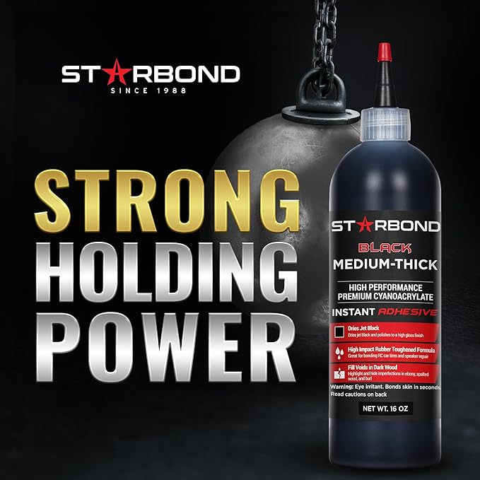 - ✅ PREMIUM CYANOACRYLATE SUPER GLUE - LAB TESTED FOR OPTIMAL PERFORMANCE: High performance industrial grade adhesive. Starbond Black Medium Thick CA is used to bond parts, with focus on impact and shock absorbance qualities.