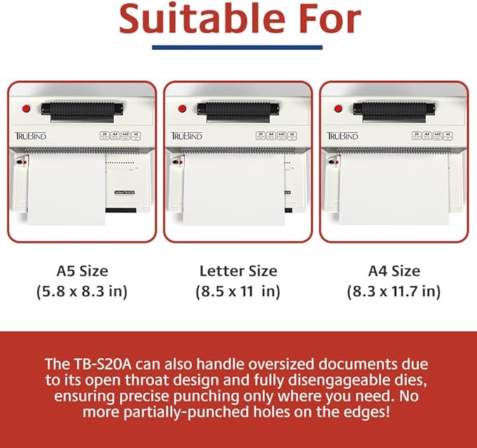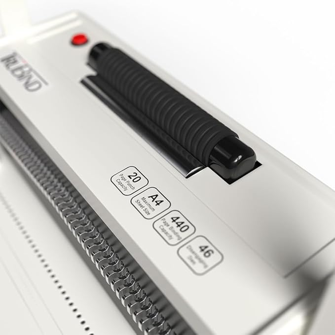 TruBind Coil Binding Machine with Electric Coil Inserter and Adjustable Side Margin | 20 Sheet Punch Capacity | Bind up to 440 Sheets | 46 Fully Disengageable Dies | 4:1 Pitch | 2-Year Warranty