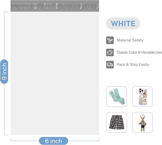 - White Poly Mailers- Our versatile poly mailers serve as a dependable choice for your e-commerce venture or personal mailing needs, ensuring secure and efficient shipment every time. These mailing envelopes measure 6x9 inches, 100pack mailers which are lightweight.