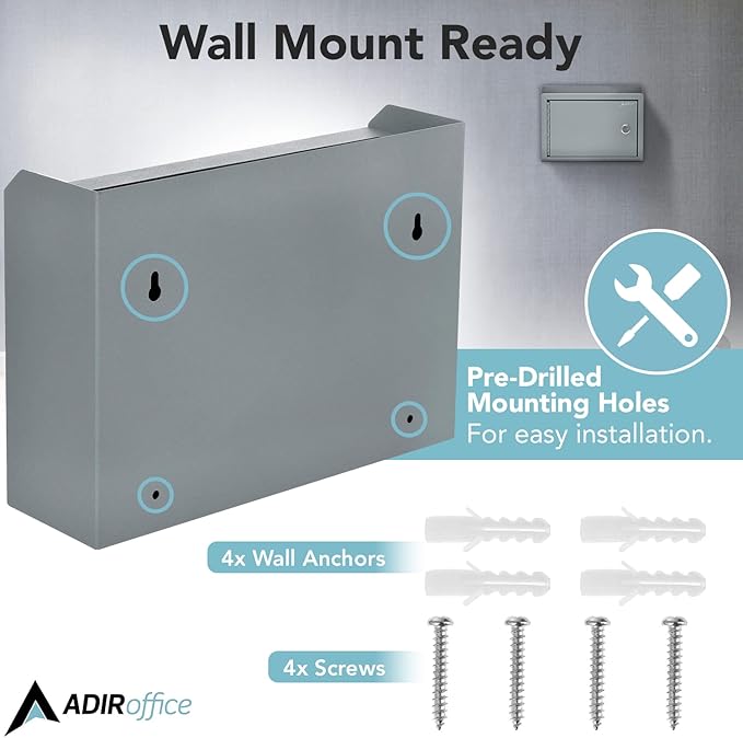 Adir Suggestion Box with Slot and Lock - Money Drop Box with Lock, Cash Dropbox - 9.8x7.5x3.4 Inches Wall Mount Donation Box - Metal Deposit Box in Gray