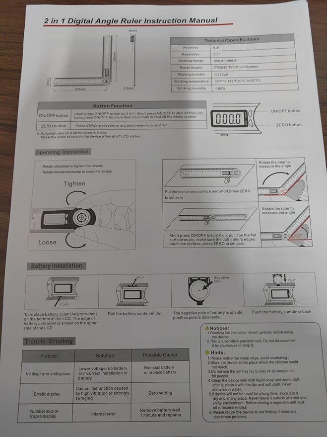 - LOCKING FUNCTION -- For read it easily, GemRed angle finder could be locked at any angle. *NO REVERSE ANGLE/DISPLAY FUNCTION.
