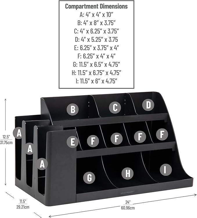 - Perfect Size: Measuring 24 inches long x 11.5 inches wide x 12.5 inches tall (60.96 x 29.21 x 31.75 centimeters) and weighing 5.3 lbs (2.4 kilograms), this cup and snack organizer is the perfect size for any countertop