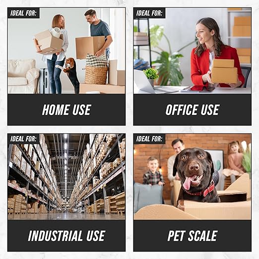- β¨ Sleek Design: The wide platform accommodates large items, making it an ideal scale for packages, luggage, and even as a pet scale for dogs. The extendable cord and LCD display ensure easy, clear readings for home, office, or commercial scale use.