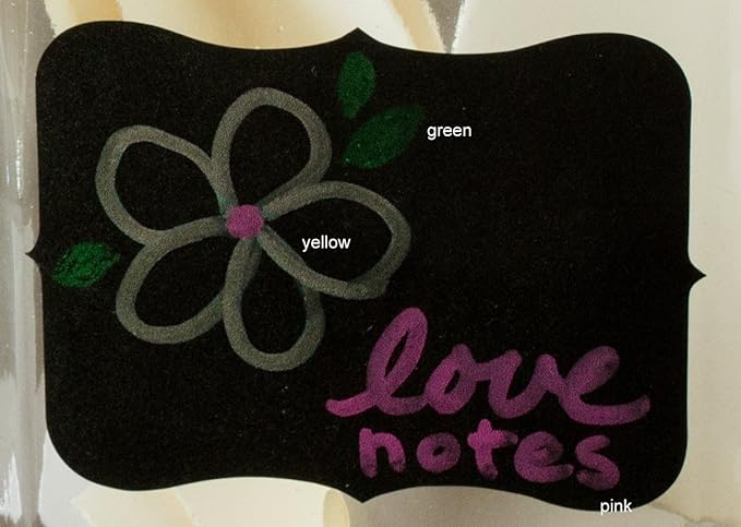 - USE ON ANY NON-POROUS SURFACE such as chalkboard labels, vinyl stickers, ceramic mugs, wine glasses, mirrors, metal. Use a chalkboard sticker and an easel to make a decorative wedding table marker, create party menus and craft projects; write directly on a mason jar. These chalkboard markers work beautifully with both country and traditional decor. The fine tip enables you to write clearly on even small items such as spice jars or cosmetic supplies. Unleash your inner artist!