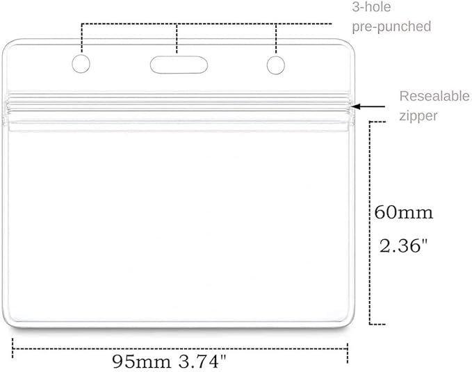 - Clear plastic ID pouch/sleeve Inner Dimensions: 2.4 "W x 3.74 " L . Fits Avery 2.25 x 3.5 Inches Name Badge Inserts, or 2-11/32 x 3-3/8 Inches Print or Write Name Badge Labels; Fits 1-3 pcs of credit card or driver's license sized cards.