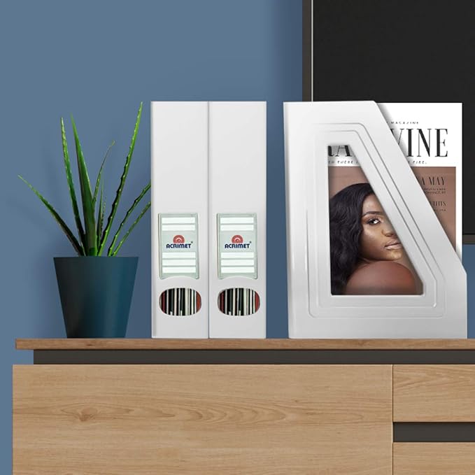 Acrimet Magazine File Holder, Durable Rack, Space-Saving Organizer (Plastic) (White Color) (2 pack)