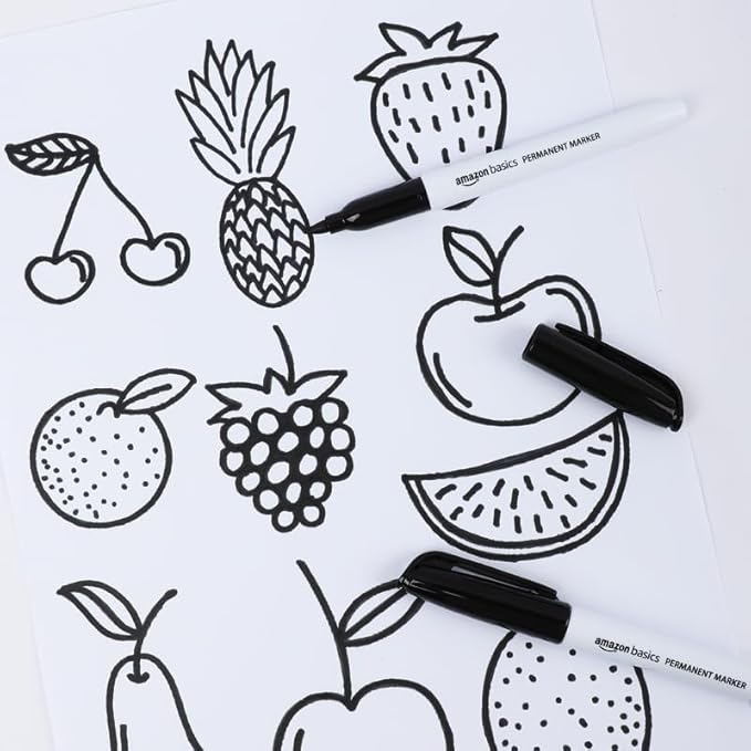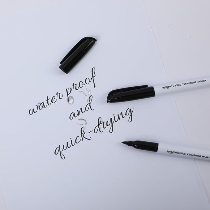 Amazon Basics Fine Tip Point Permanent Markers for Office, School, and Home Use, Black, 12 Pack