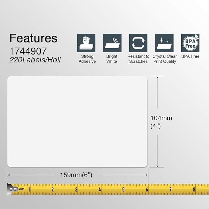 ![BETCKEY - Compatible DYMO 1744907 (4" x 6") Shipping Labels, Perforated, Compatible with DYMO Labelwriter 4XL Rollo & Zebra, NOT Fit 5XL [10 Rolls/2200 Labels]](http://linesday.com/cdn/shop/files/51MzTDEmiSL._AC_SX679.jpg?v=1759573911&width=1445)