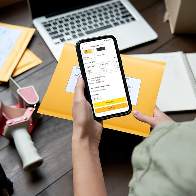 Fuxury Kraft Bubble Mailer 6x10 Inch 50 Pack,Strong Adhesion Padded Envelopes,Self Seal Bubble Envelopes, Waterproof Cushioned Bubble Mailers Packaging for Small Business,Bulk #0 Mailers Yellow