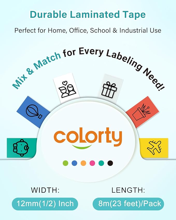 - Easy to peel: These compatible with Brother label maker tapes 12mm 0.47 inch have a split design that makes them easy to peel from the middle. And they can be adhered to most flat, round, rough or smooth surfaces. There are no sticky trace when label teared.