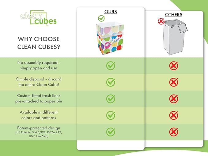- ✅【EFFORTLESS CLEANUP & DISPOSAL】Simply unfold, use, and toss — keep your event clean and mess-free without extra effort. Clean Cubes are disposable recycling bins and trash cans with a patent-protected design and custom-fitted trash liner in each bin.