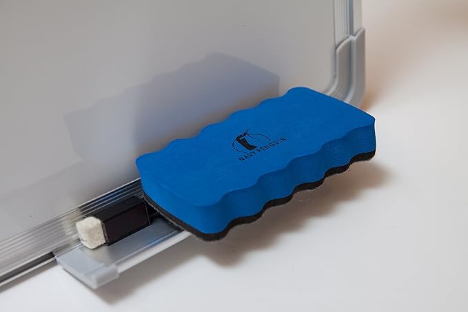 - PREMIUM SET - contains 1 whiteboard corkboard (half/half) + 1 dry wipe eraser + 4 magnetic colorful markers + 4 magnets + 10 colored push pins (accessories).