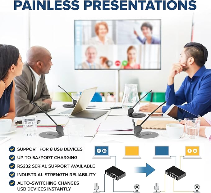 Managed USB Switch/Hub 2 Computers - 9 Port, Fast Charge (4A), Industrial & Scientific Grade, Programmable Compatible with Mac/Windows/Linux for Keyboard Mouse External Hard Drive