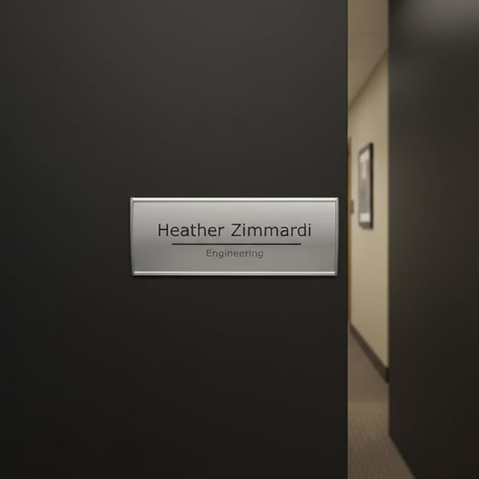 SET OF 5, SIGN HOLDER DOOR WALL MOUNT NAME PLATE FRAME DISPLAY CURVATURE PLAQUE SILVER ALUMINUM, 6.00" W x 2.36" H