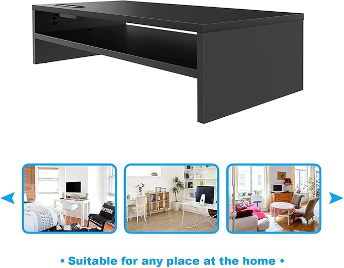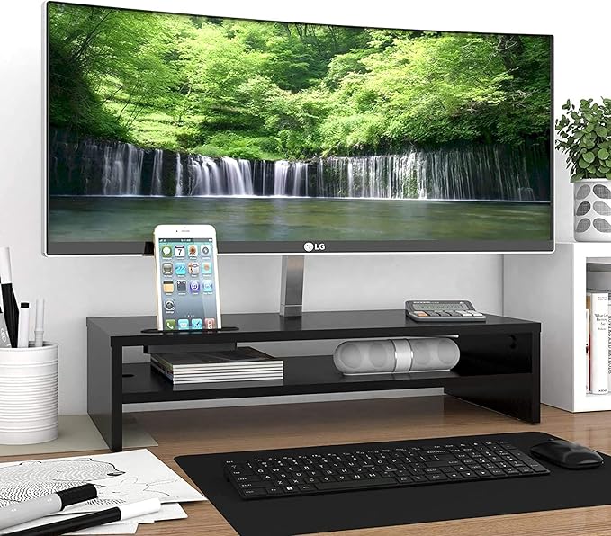 - SPACIOUS STORAGE ORGANIZER - Featuring a built-in cable management system and a cellphone holder, this monitor stand riser helps you organize your workspace and keep your desk clutter-free. The 21.3-inch shelf provides ample space to store laptops, keyboards, and other essential items