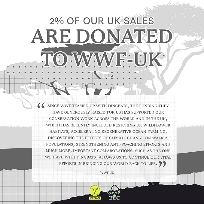 - SUSTAINABLY SOURCED, ENVIRONMENTALLY CONSCIOUS: Made from recyclable materials and FSC certified paper, our notebooks are Vegan Certified. Dingbats* Notebooks Ltd donates 2% of UK sales to WWF-UK, supporting environmental conservation.