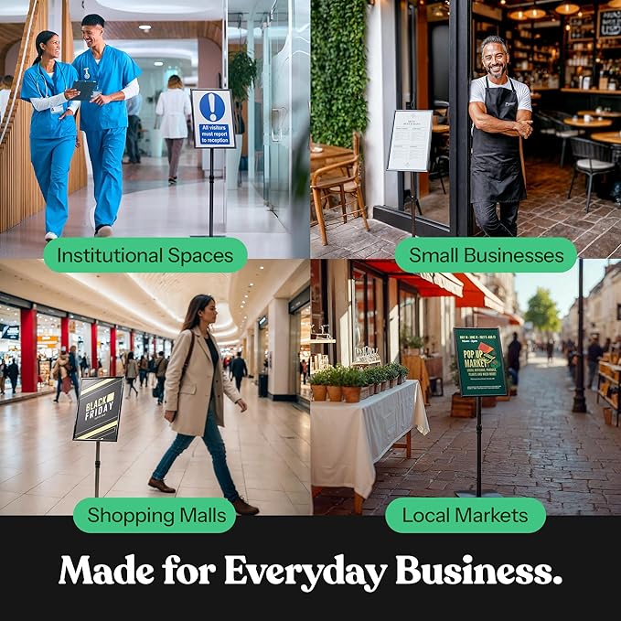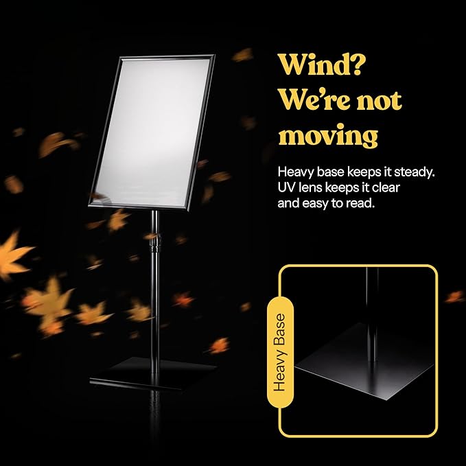 T-SIGN Adjustable Heavy Duty Pedestal Sign Holder Poster Stand, 11x17 Inch Vertical & Horizontal Sign Stand Displayed Poster Holder - Metal Base Square Sign Stands for Display, Outdoor Sign