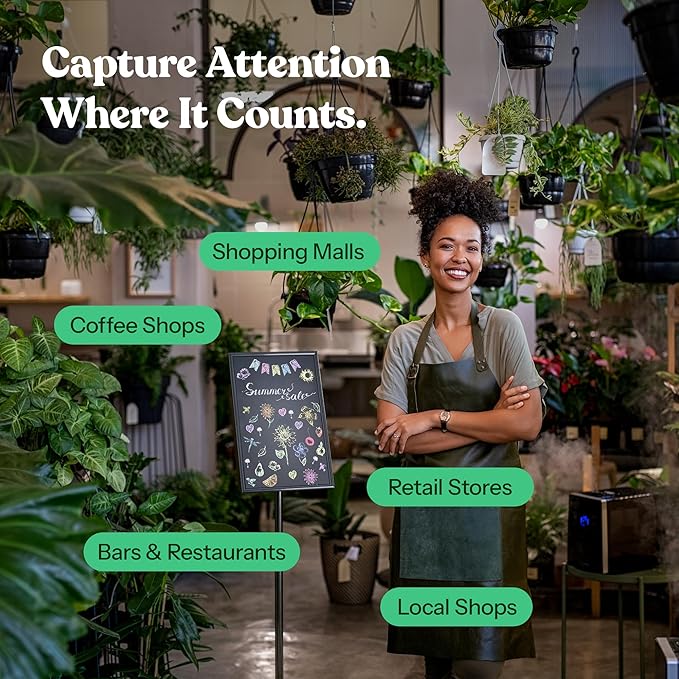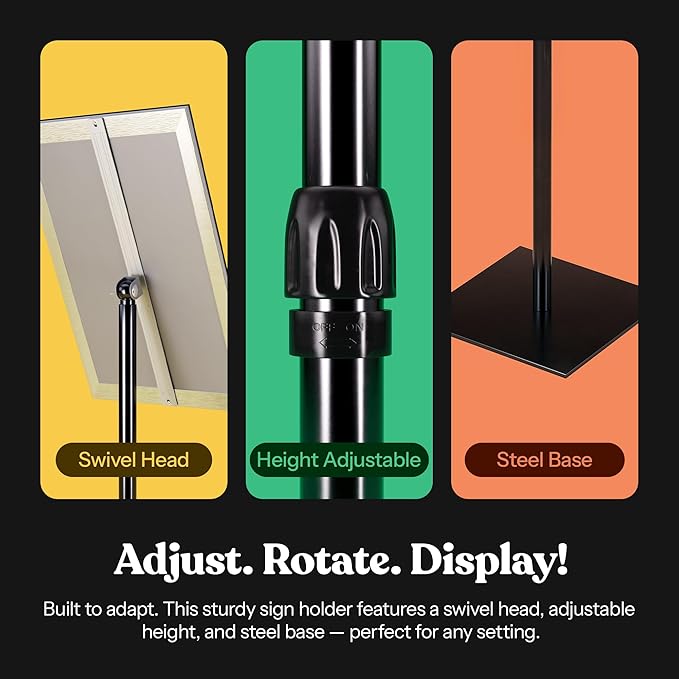 - Adjustable View : The Sign Frame Height is Between 31.5” and 48” Tall, can be revolved in horizontal or vertical as you like.