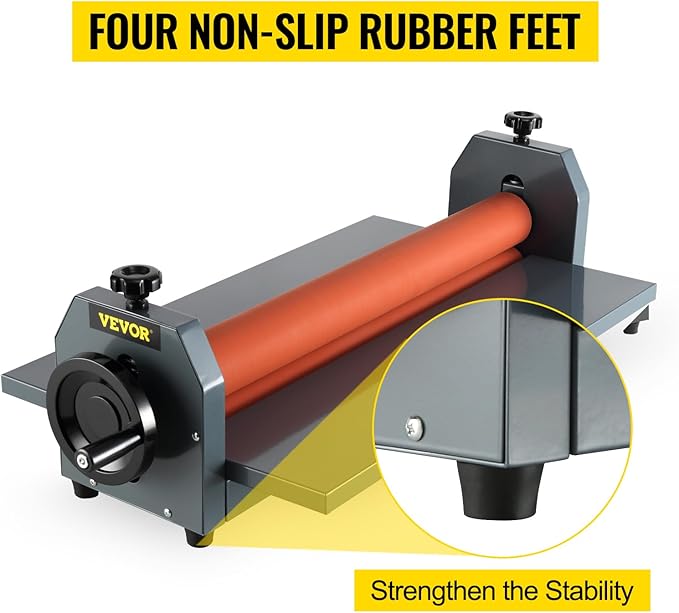 - STABILITY & MANUAL: Manual vinyl laminator with four non-slip rubber feet, more stable to protect the machine; no power supply, manual operation, control at any time.