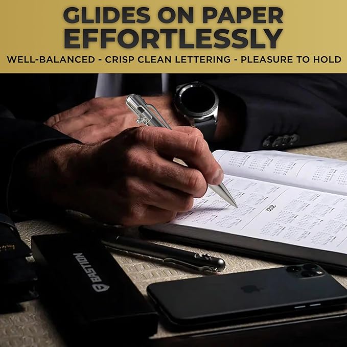 - Bolt Action Mechanism: With premium machined CNC precision design, BASTION pens bring together functionality and elegance. Our bolt-action technology offers a secure lock with no wearing components, as well as a smooth one-push operation. A sturdy body, effortless retractable system, and luxurious look make our pens a status symbol.