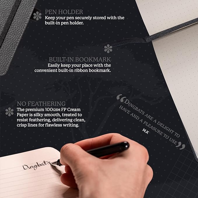 - SUSTAINABLY SOURCED, ENVIRONMENTALLY CONSCIOUS: Made from recyclable materials and FSC certified paper, our notebooks are Vegan Certified. Dingbats* Notebooks Ltd donates 2% of UK sales to WWF-UK, supporting environmental conservation.