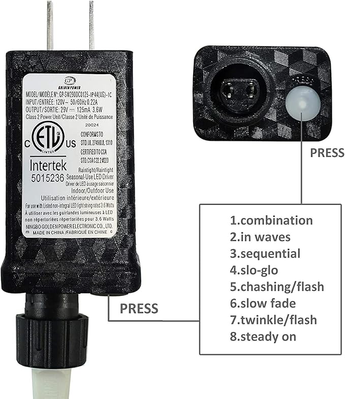 - Special Feature : 8 Lighting Effect, Low Voltage Output, Memory Function