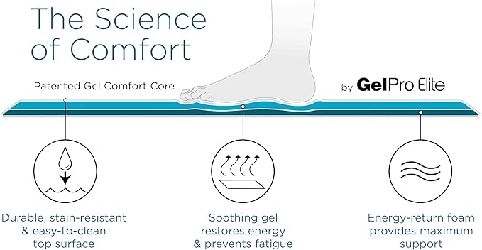 - GelPro Elite features a 3/4" Dual Comfort core: Soothing gel + energy-return foam which dramatically reduces stress, fatigue & discomfort