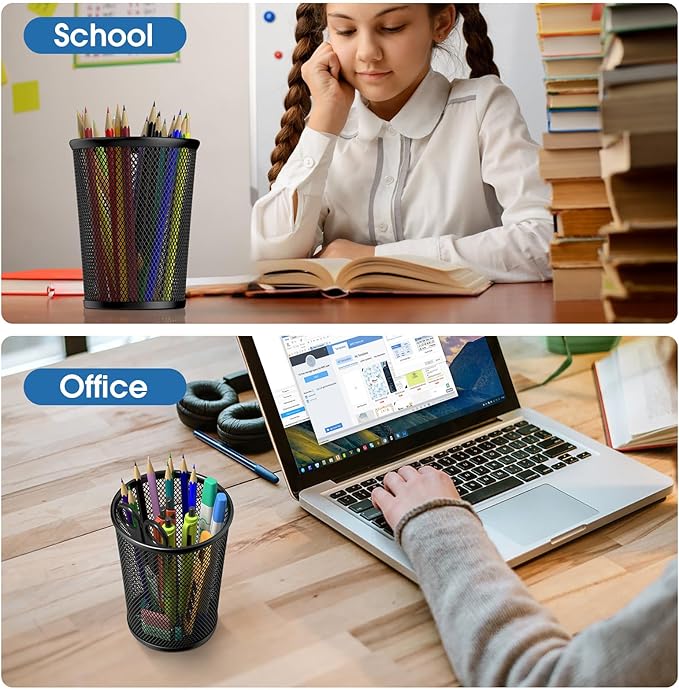 - PREMIUM MATERIAL: Premium mesh metal material endows this pen holder a solid and lightweight construction.