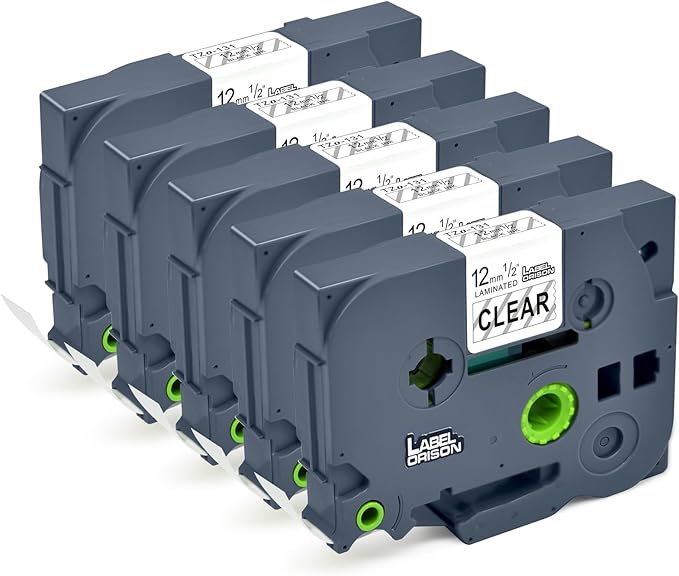 Label Orison TZe-131 Tze Tapes Compatible with Brother P-Touch Label Tape Clear, for Brother Label Maker Tape T-D210 PT-H100 PT-1880, Black on Clear, 1/2''(12mm) x 26.2'(8m), 5PK