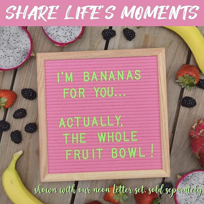 Felt Like Sharing Square Letter Board (Hot Pink Felt - 10”x10”) – Changeable Message Board with 3 Sets of Felt Board Letters – Statement Wall Sign for Quotes, Home or Holiday Decor In Oak Frame