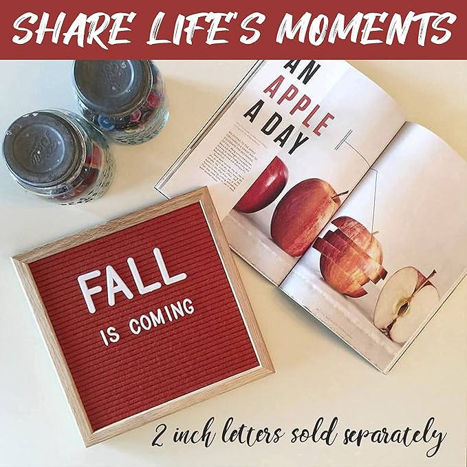 Felt Like Sharing Square Letter Board (Rusty Red Felt - 10”x10”) – Changeable Message Board with 3 Sets of Felt Board Letters – Statement Wall Sign for Quotes, Home or Holiday Decor In Oak Frame