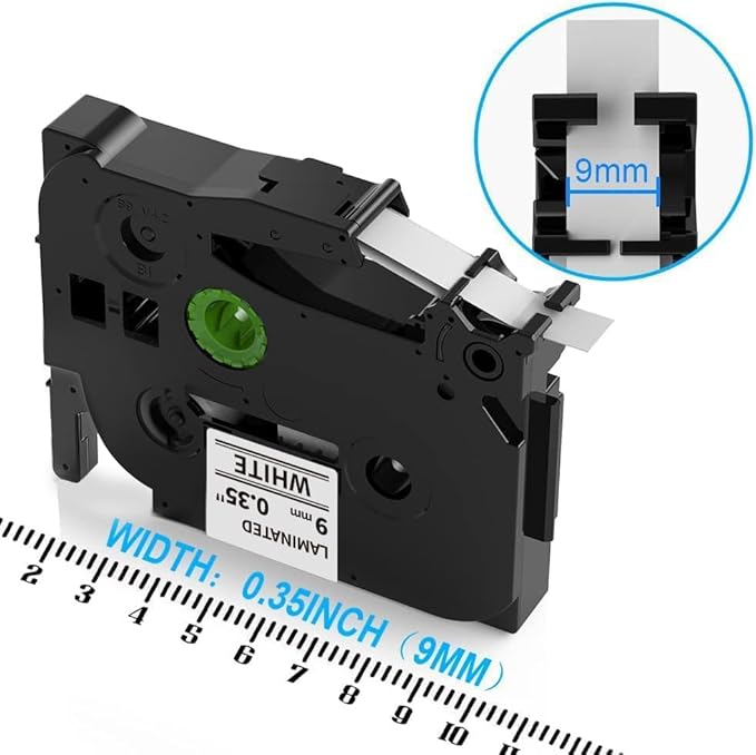 - Simple and Practical: Size-9 mm (0.35")* 8 m (26.2'). Color-Black writing on white tape. Simple, clean, safe and beautiful