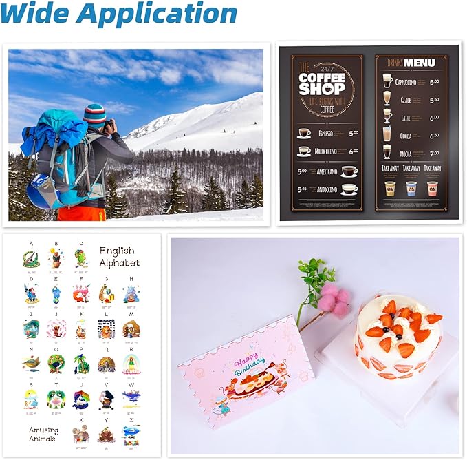- USED FOR: Unfold greeting cards, Photos, Photo Albums, Arts, Menu Printing, Calendars, Brochures, Flyers, Posters,Christmas Cards ,Wedding Cards, etc value packed for your business and home use