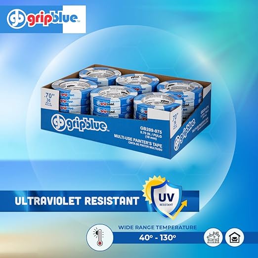 - ONE TAPE, MANY USES: GripBlue Blue Tape sticks to walls, wood, metal, and more. Ideal for painting, crafting, decorating, or kitchen touch-ups. A reliable choice for every project, every surface.