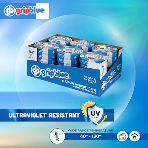 - ONE TAPE, MANY USES: GripBlue Blue Tape sticks to walls, wood, metal, and more. Ideal for painting, crafting, decorating, or kitchen touch-ups. A reliable choice for every project, every surface.